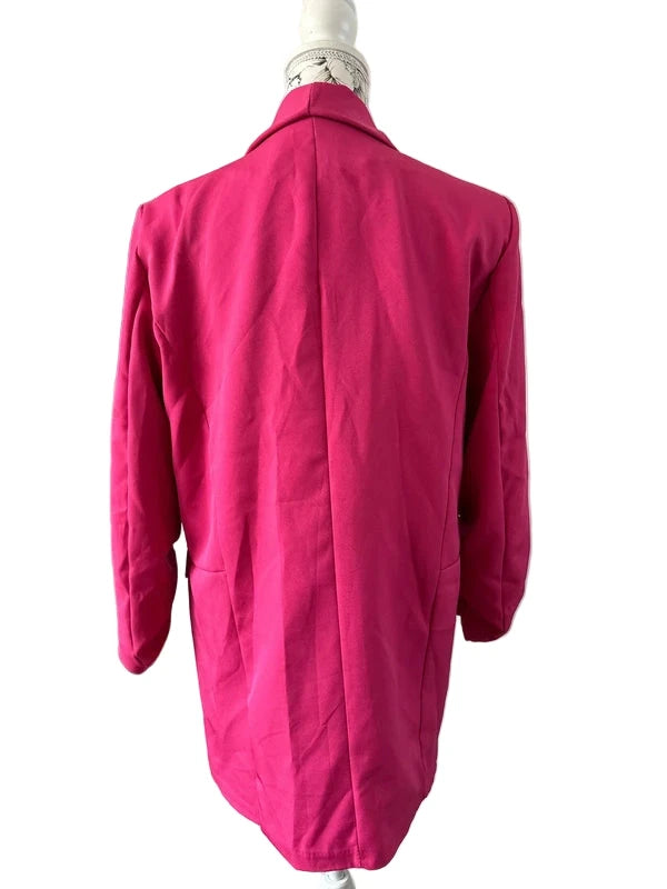 Deze prachtige fuchsia blazer is perfect om elke outfit een frisse, modieuze touch te geven. De kleur springt er echt uit en het model valt mooi recht naar beneden, waardoor hij elegant en vrouwelijk oogt. Ideaal voor zowel casual looks als een opvallende business outfit. Mooi te combineren met jeans, een zwarte broek of een jurk.