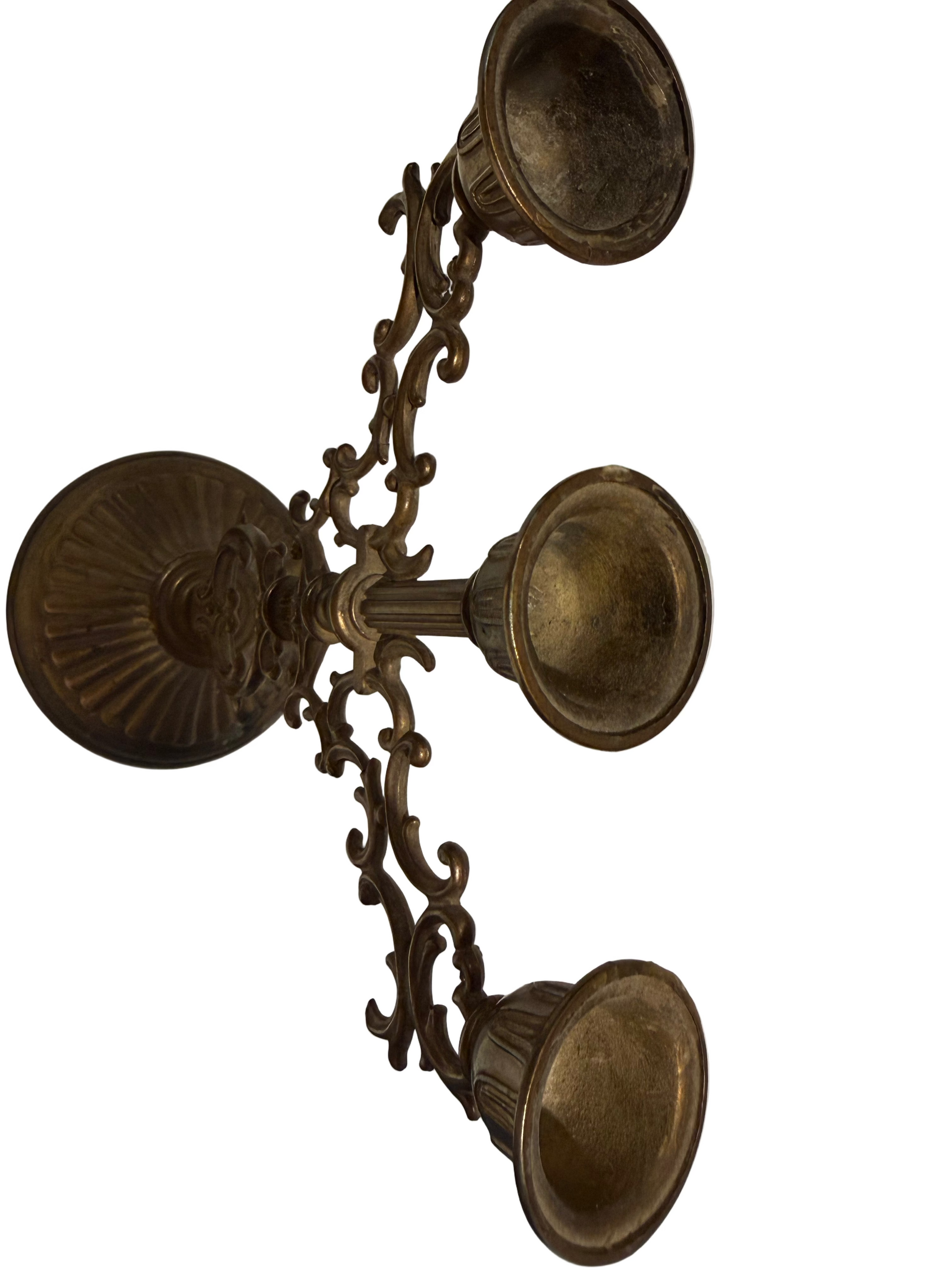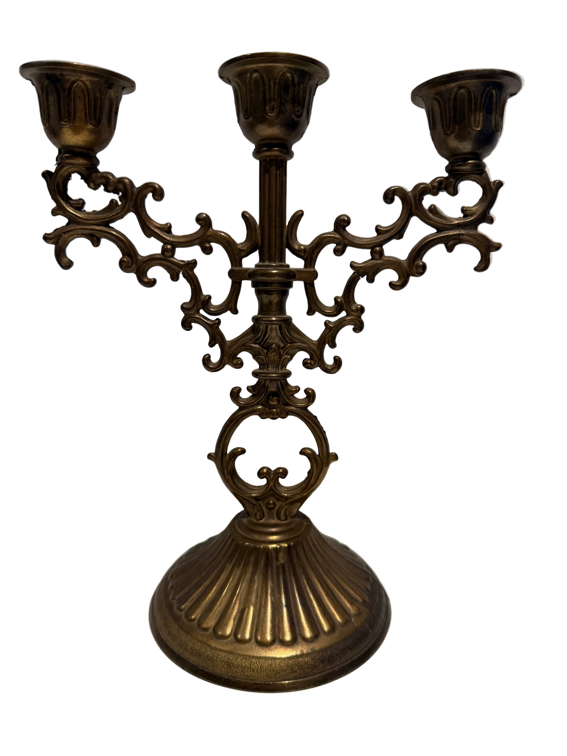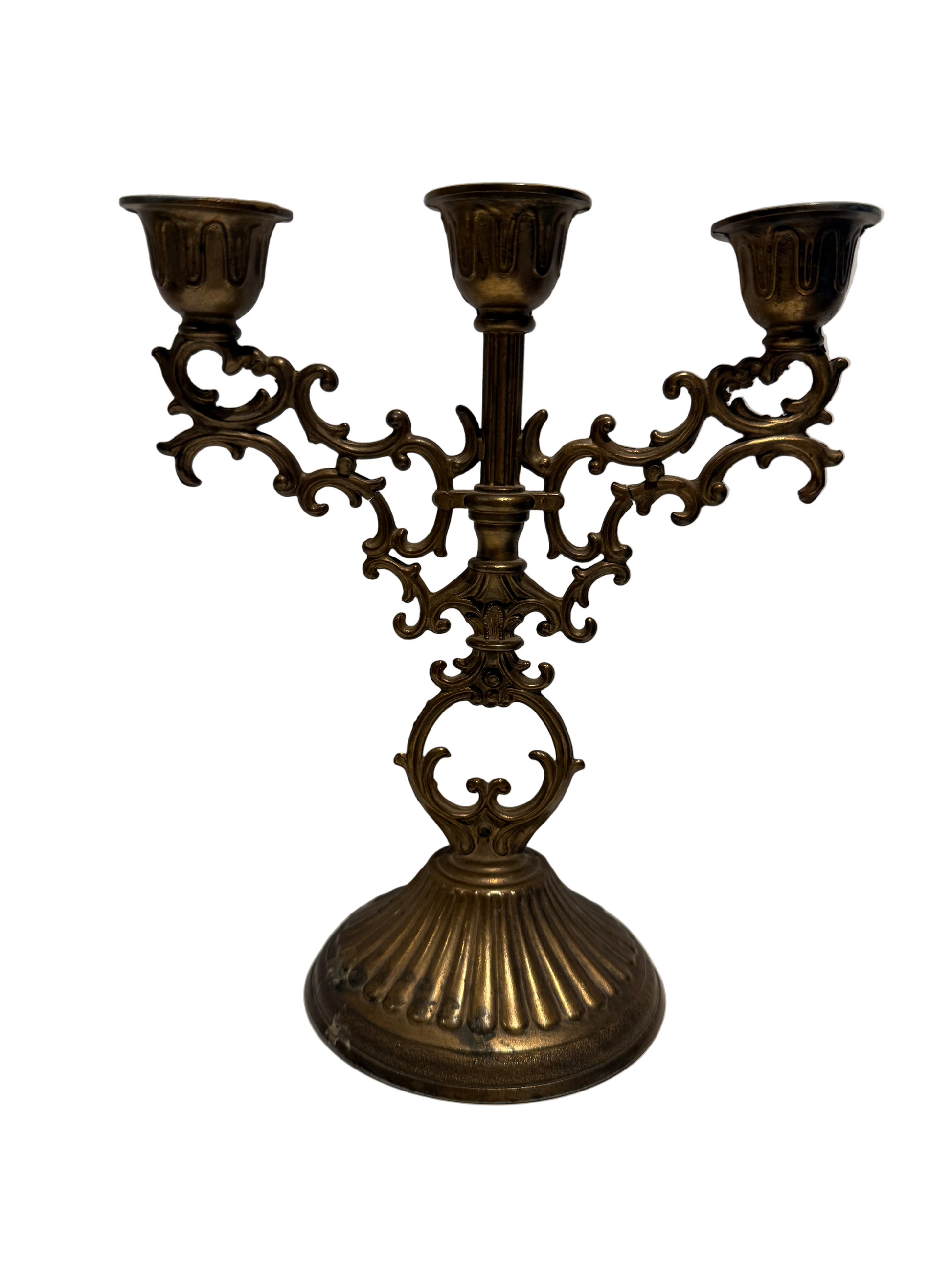 Een kandelaar met klasse, gemaakt van messing en mooi verouderd.
